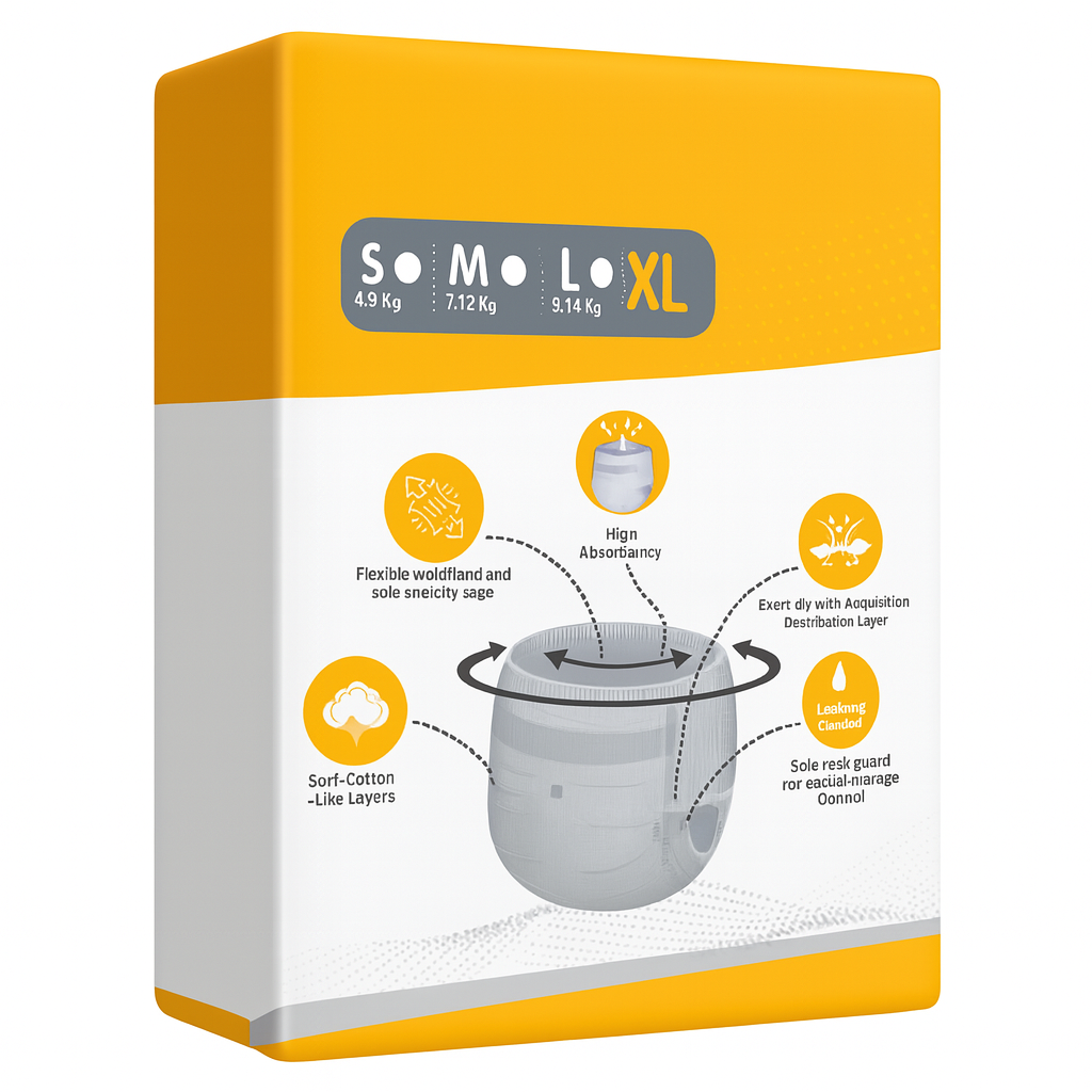 Let your baby enjoy every moment in comfort and happiness with Bumpi Care Premium Baby Pants (XL Size) – specially crafted to provide super-soft comfort, all-night leak protection, and antibacterial care for your baby’s delicate skin. These premium baby pants are designed using ultra-absorbent technology that locks in wetness instantly and keeps your baby dry for long hours. Perfect for both daytime play and peaceful nights with wet indicator yellow to blue line Bumpi Care ensures your little one always feels fresh and protected. The 100% leak-proof protection layer prevents leakage even during long naps, while the antibacterial sheet guards against rashes, irritation, and infections. With extra cushioning and a breathable, cotton-like feel, these baby pants provide gentle care and ultimate comfort for your baby’s sensitive skin. The 360 stretchable waistband ensures a snug yet flexible fit that adapts to every movement without leaving red marks. Bumpi Care Baby Pants are easy to wear and remove – just pull them up like underwear and tear the sides to remove when soiled. Each diaper is lightweight, hygienic, and carefully packed to maintain purity and quality. Availabel Size:-S, M, L & XL.